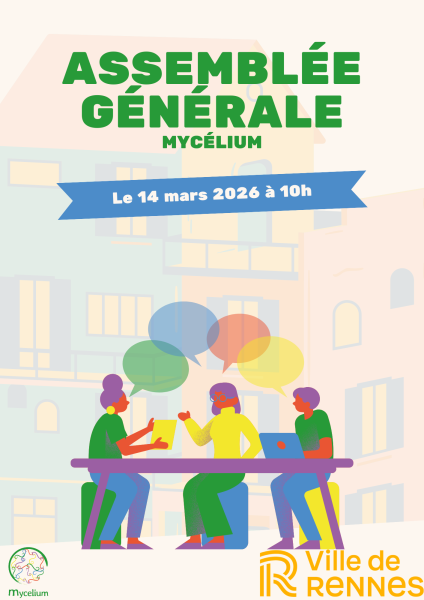 L’association Mycélium a le plaisir de vous inviter en qualité d’adhérent.e, de sympathisant.e ou de partenaire à son Assemblée Générale qui aura lieu le samedi 14 mars au Jeu de Paume, à Rennes.